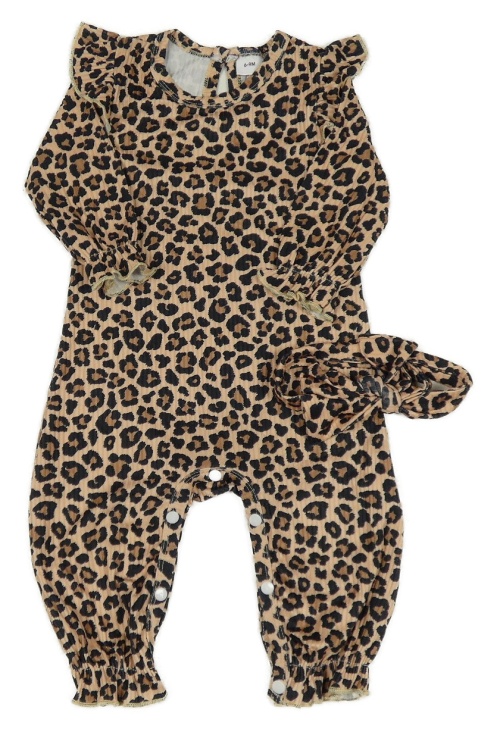 2set - Béžovo-čierny vzorovaný overal + čelenka