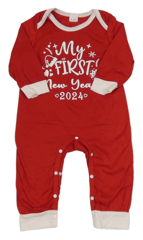 Červeno-biely overal s nápismi
