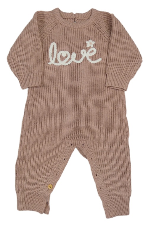 Staroružový pletený overal s nápisom