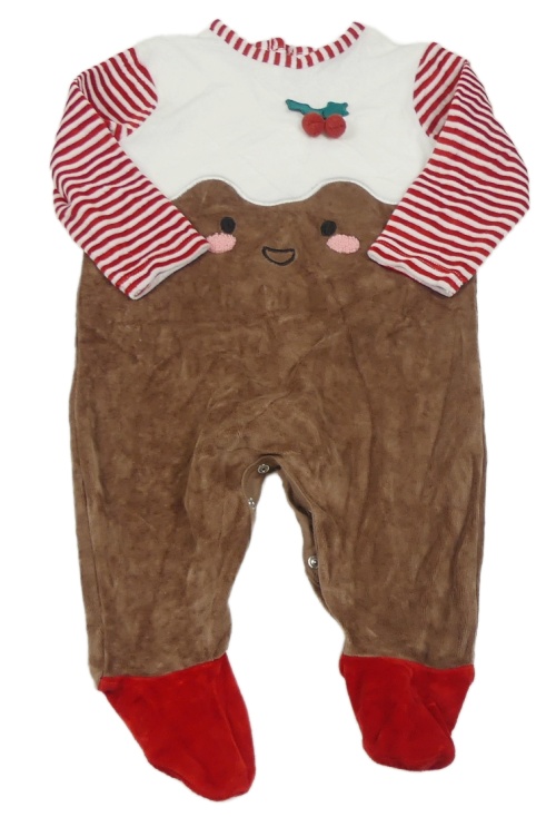 Hnedo-bielo-červený zamatový overal s ozdobou