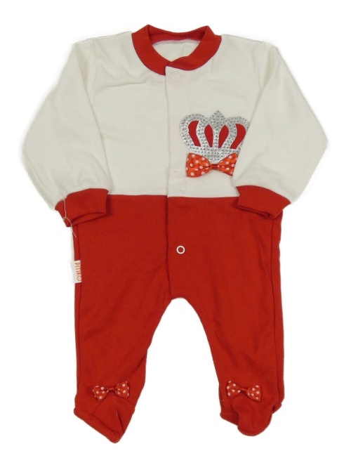 Bielo-červený overal s korunkou a kamienkami Pitik