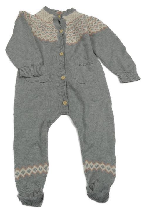Bielo-ružovo-sivý pletený overal so vzorom