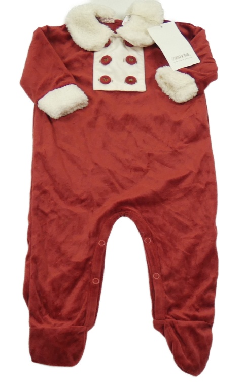 Červeno-biely zamatový overal s huňatým golierikom Zara