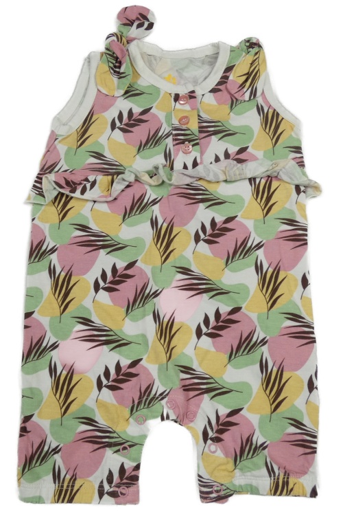 Bielo-ružovo-farebný vzorovaný kraťasový overal