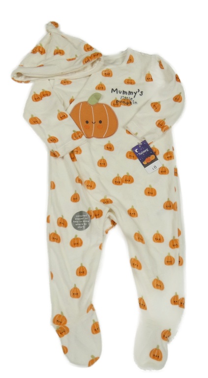 Nové - 2 set - biely zamatový overal s dýněmi + biela zamatová čapica s dýněmi Nutmeg