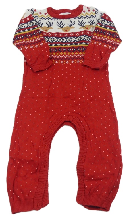 Červeno-biely vzorovaný pletený overal so sobmi F&F