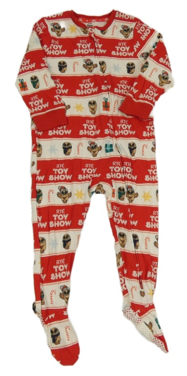 Červeno-biely pruhovaný overal so sovami a nápismi