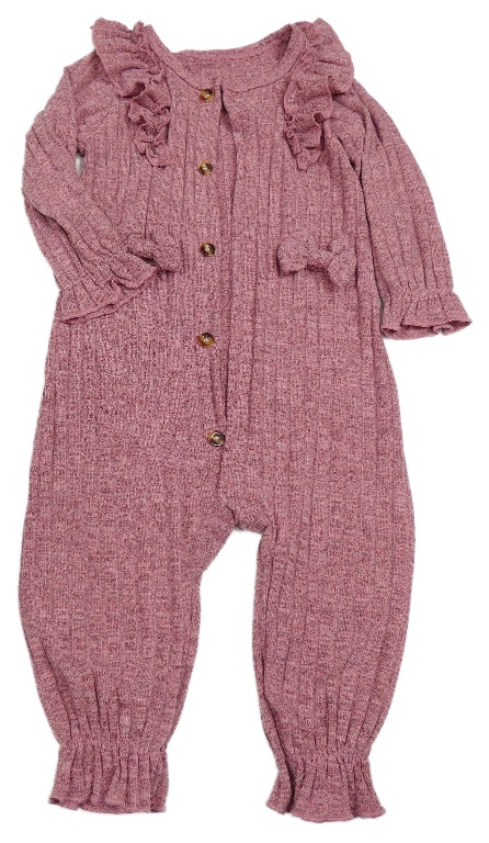 Staroružový melírovaný úpletový overal s mašľami a volánikmi