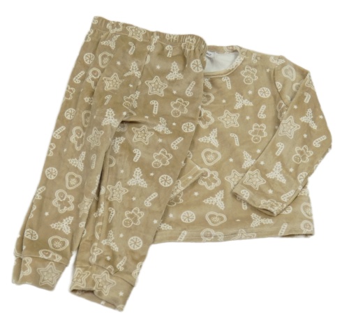 Nové - Béžové plyšové pyžama s perníčky Sinsay