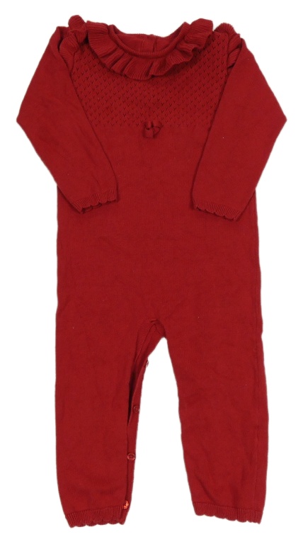 Červený pletený overal s dírkovaným vzorom a volánikmi Matalan