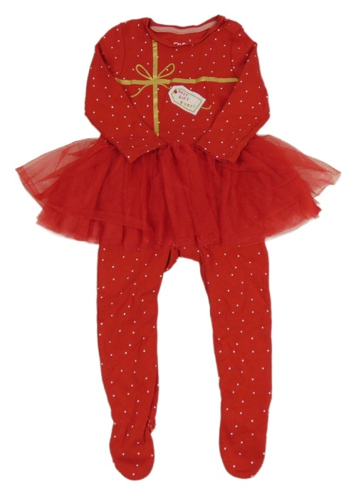 Červený bodkovaný vianočný overal s tylovou sukní F&F
