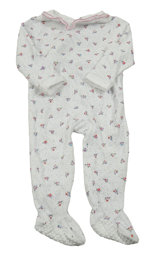 Biely bodkovaná ý zamatový overal s kvetmi a golierikom Leigh Tucker