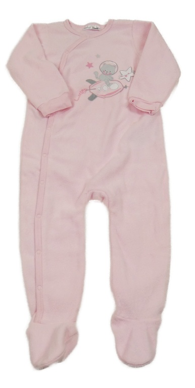 Svetloružový fleecový overal s mačičkou a raketou Ergee