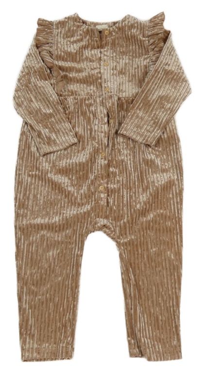 Svetlohnedý rebrovaný zamatový overal s volánikmi H&M