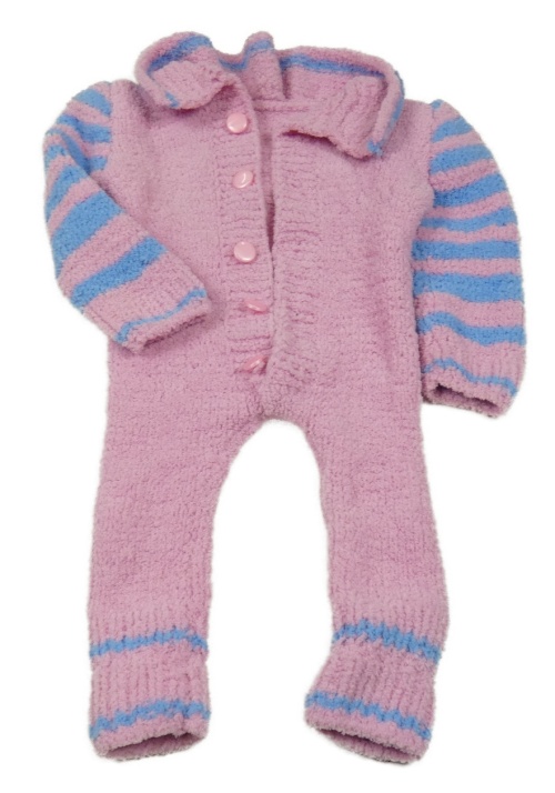 Ružovo-modrý plyšový overal s golierikom
