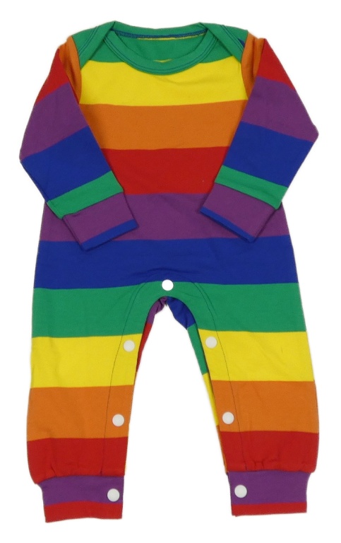 Farebný pruhovaný overal