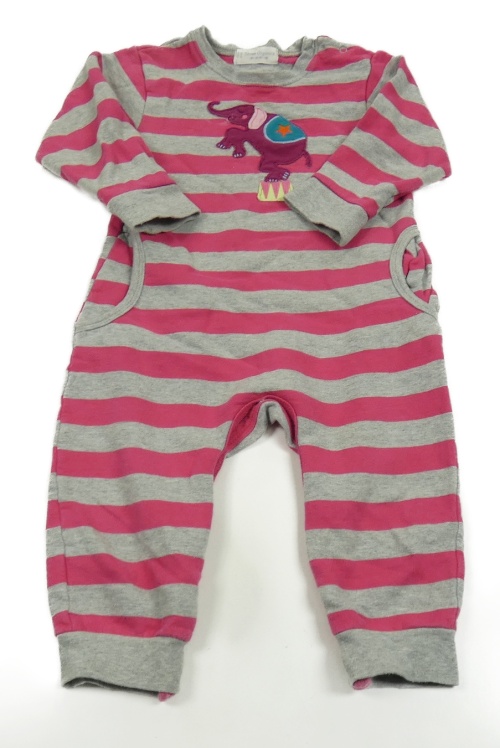 Sivo-fuchsiový pruhovaný teplákový overal so slonom