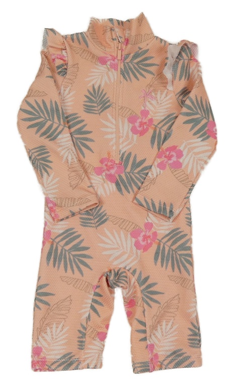 Broskvový rebrovaný overal s lístečky a volánikmi PRIMARK