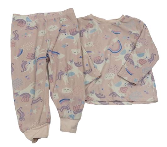 Svetloružové plyšové pyžama s jednorožcami a duhami
