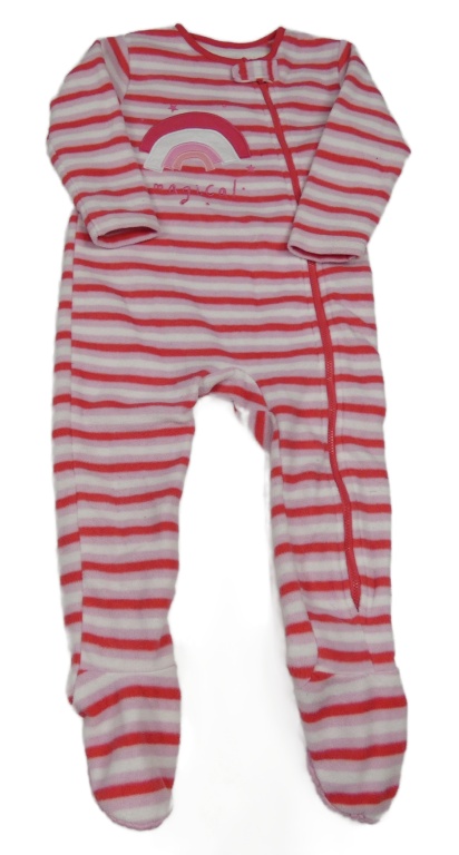 Ružovo-bielo-červený pruhovaný fleecový overal s dúhou St. Bernard