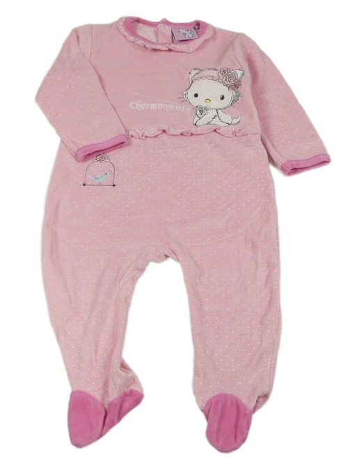 Svetloružová -bodkovaná ý zamatový overal s Kitty Sanrio