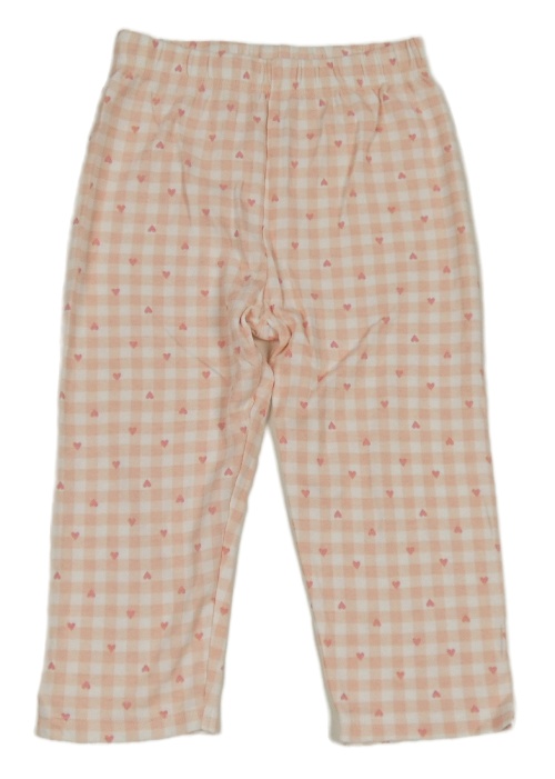 Bielo-ružové kockované pyžamové nohavice s srdiečkami