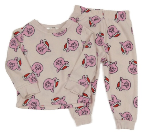 Světlepudrové fleecové pyžama s prasátky s vánočním motívom M&S