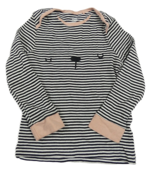 Čierno-bielo-svetloružové pruhované rebrované pyžamové tričko s čumáčkem F&F