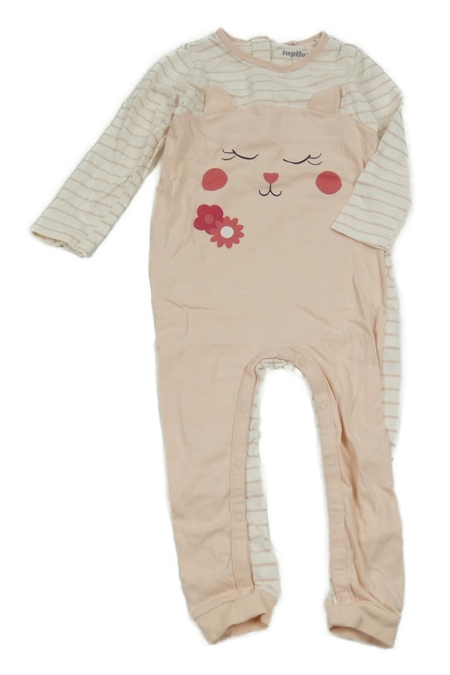 Svetloružová -biely pruhovaný overal s mačičkou Lupilu
