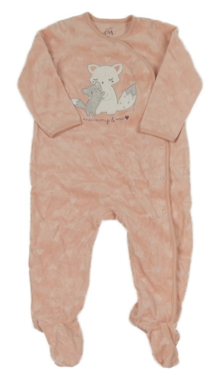 Svetloružový zamatový overal so srdiečkami a líškou C&A