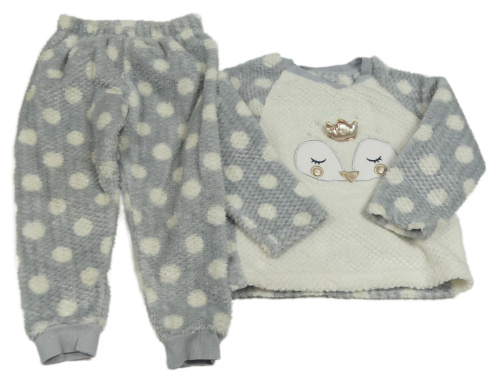 Bielo-sivé chlpaté pyžama so sovou a bodkami Nutmeg