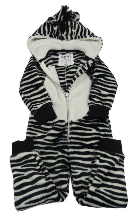 Bielo-čierna pruhovaná plyšová kombinéza s kapucí - zebra