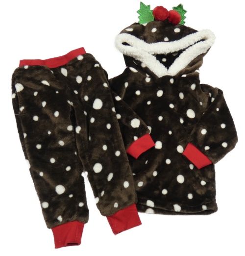 2Set - Tmavohnědo-bielo-červená bodkovaná á plyšová domáceá vianočná mikina s kapucí + nohavice