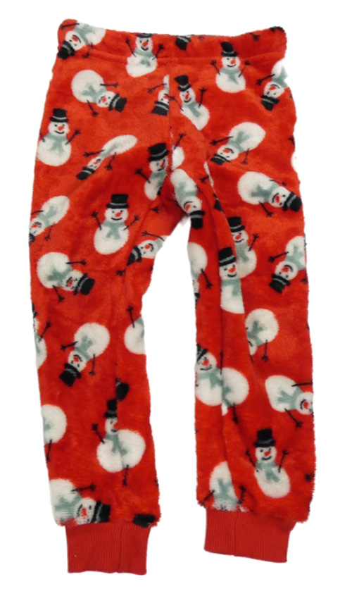 Červené chlpaté pyžamové nohavice so sněhuláky