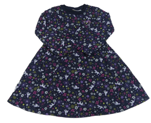 Tmavomodré kvetované bavlnené šaty s koňmi a srdcem z flitrů Kids