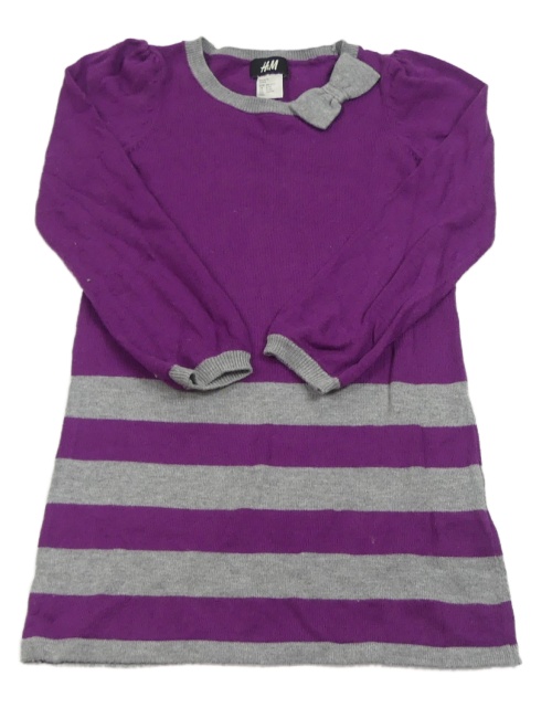 Fialovo-sivé pletené šaty s mašlou a pruhmi H&M