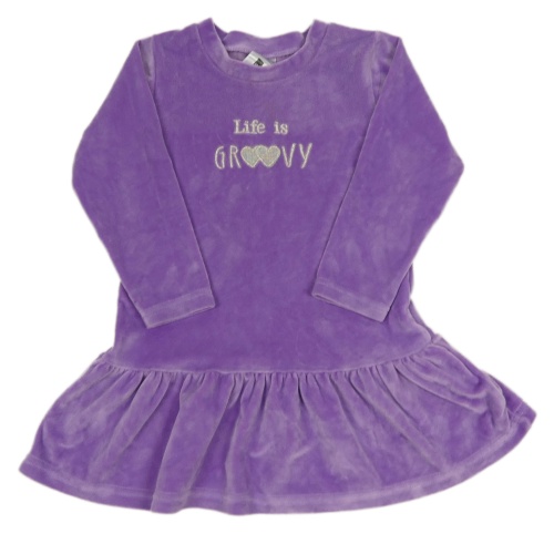 Fialové plyšové šaty so srdiečkami a nápisom