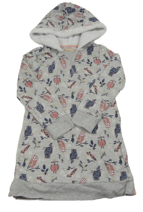 Sivé teplákové šaty so sovami a kapucňou