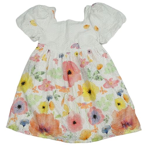 Biela plátenné šaty s kvietkami a motýlikmi a madeirou PRIMARK