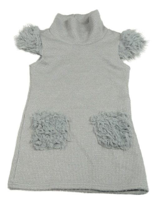 Sivé svetrové šaty s kožešinovými prvky a rolákom