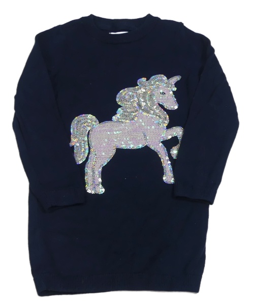 Tmavomodré svetrové šaty s jednorožcem z flitrů Bluezoo