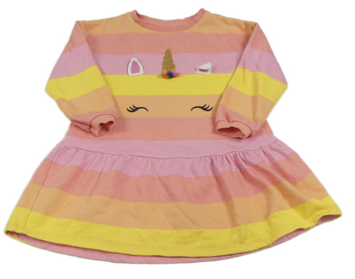 Ružovo-lososovo-žlté pruhované teplákové šaty s jednorožcom F&F