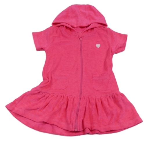 Neónově ružové froté prepínaci šaty so srdiečkom a kapucňou