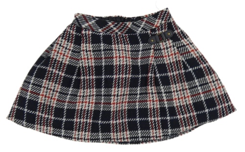 Tmavomodro-bielo-červená kockovaná vlnená sukňa Nutmeg