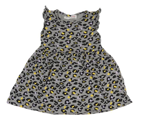 Sivo-čierno-žlto-svetlofialové vzorované šaty s volánikmi MINOTI