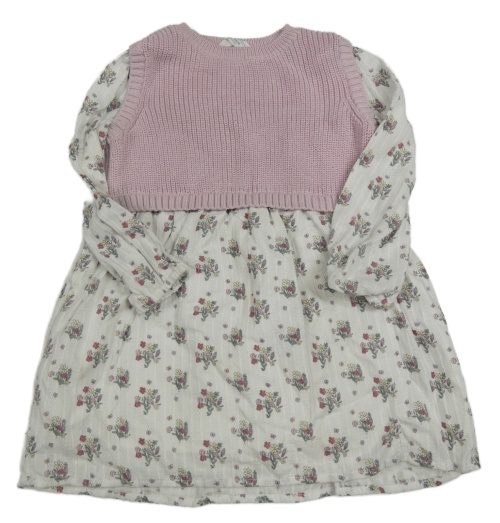 Biele rebrované šaty s kvietkami a světlerůžovým svetrovým bolérkem PRIMARK