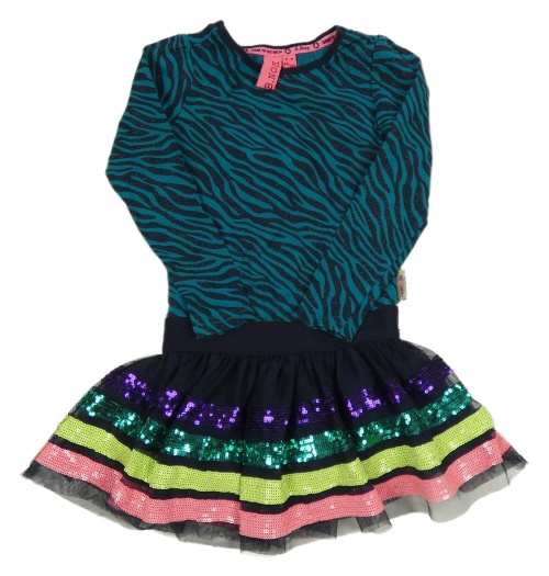 Tmavomodro-azurové vzorované šaty s tylovou sukní a flitrami