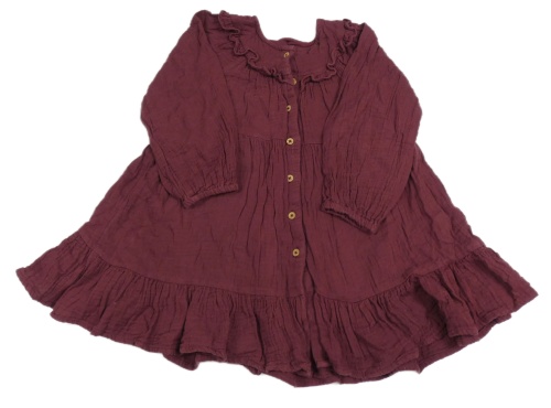 Vínové mušelínové prepínaci šaty s volánikmi Tu