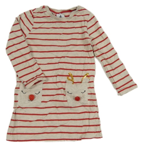 Světlešedo/smetanovo-červené pruhované melírované teplákové šaty so soby/kapsami George