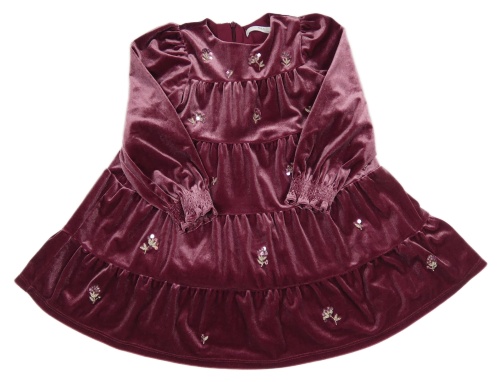 Tmavoružové zamatové šaty s kvietkami a flitrami M&S
